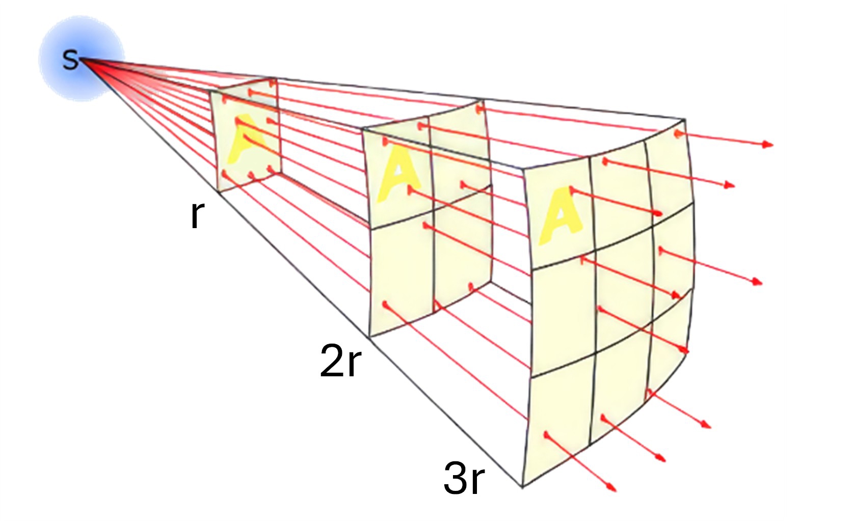 Từ công thức ta thấy cường độ âm tỉ lệ nghịch với bình phương khoảng cách từ nguồn đến điểm đang xét: