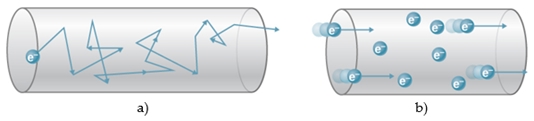 Khi không có điện trường bên ngoài, các electron tự do này vẫn chuyển động hỗn loạn không ngừng theo mọi hướng do nhiệt độ. Tuy nhiên, chuyển động này không tạo ra dòng điện vì tổng hợp các chuyển động ngẫu nhiên của chúng bị triệt tiêu lẫn nhau, khiến không có sự dịch chuyển có hướng của điện tích.