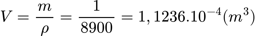 +) Thể tích của 1kg đồng là: