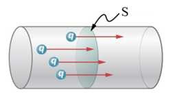 Đại lượng đặc trưng cho tác dụng mạnh yếu của dòng điện được gọi là cường độ dòng điện, được xác định điện lượng Δq dịch chuyển qua tiết diện thẳng S của vật dẫn trong một đơn vị thời gian: