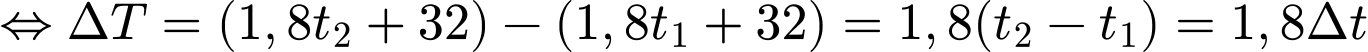 Công thức đổi giữa hai thang nhiệt độ: T(°F) = 1,8t(°C) + 32.