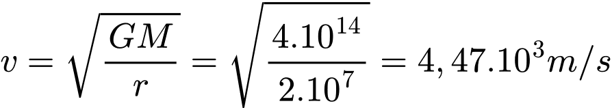Giả sử một vệ tinh bay trên quỹ đạo có bán kính r = 2.107 m. Cho GM = 4.0.1014 m3/s2