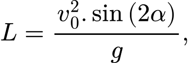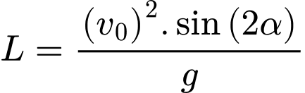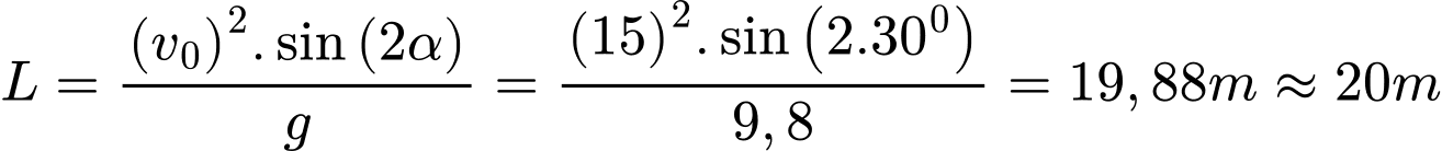 trong đó g là gia tốc trọng trường lấy xấp xỉ 9,8 m/s2, v0 là tốc độ ném bóng ban đầu (m/s), α là góc ném hay là góc hợp bởi vận tốc ném ban đầu và phương ngang.