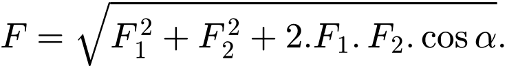 Trong đó F1, F2 là độ lớn hai lực thành phần, α là góc giữa hai vecto lực thành phần.