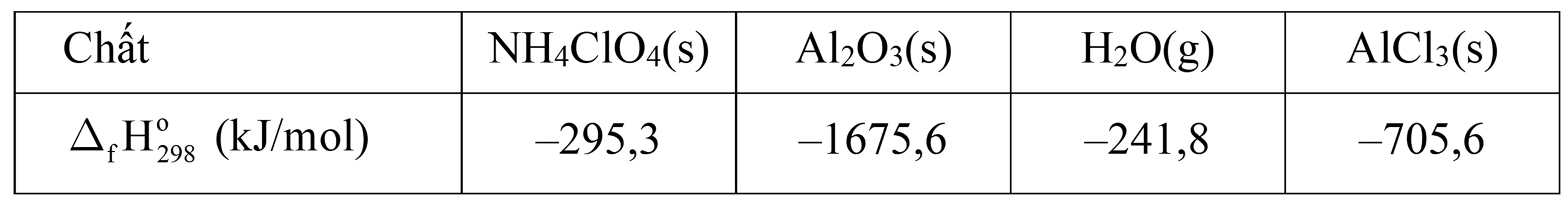 Thiết bị đẩy phi thuyền con thoi vào vũ trụ dùng nhiên liệu là hỗn hợp bột nhôm và ammonium perchlorate trong động cơ nhiên liệu rắn. Phản ứng giữa các chất xảy ra như sau:(*) 10Al(s) + 6NH4ClO4(s) → 4Al2O3(s) + 2AlCl3(s) + 3N2(g) + 12H2O(g).