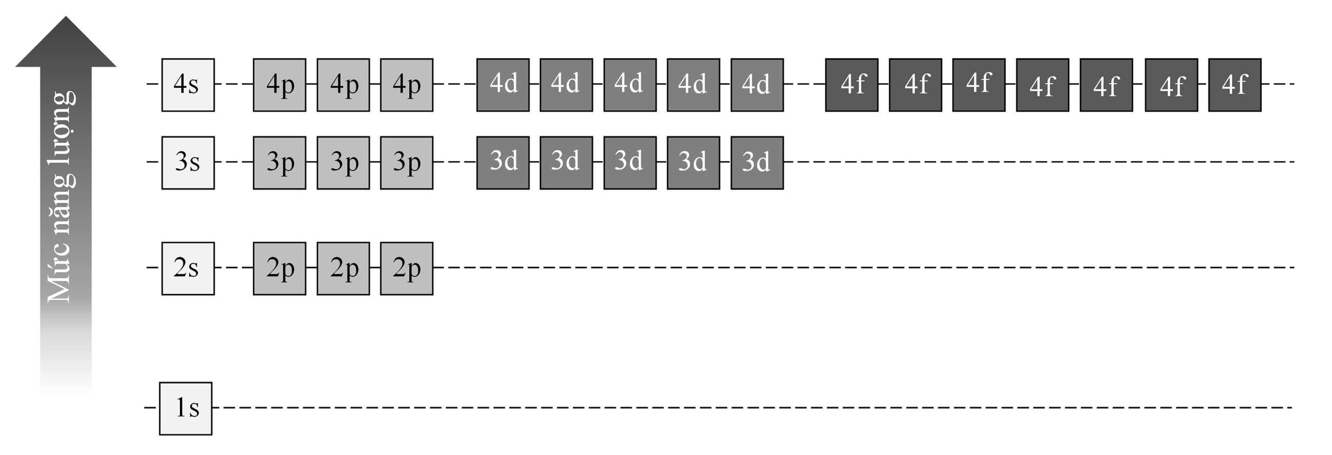 Câu 1 [382279]: Sự sắp xếp phân mức năng lượng nào sau đây là đúng?