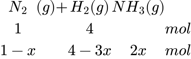 Tổng số mol khí sau phản ứng là: nH2 + nN2 + nNH3 = 4 – 3x + 1 – x + 2x = 5 – 2x (mol)