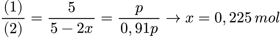 Sau phản ứng số áp suất khí của hệ giảm đi 9% so với ban đầu → 5 – 2x = 0,91p (2)