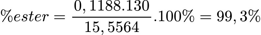 Độ tinh khiết của ester theo phần trăm khối lượng trong dung môi hữu cơ là: