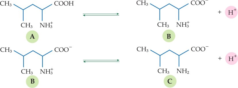 Sau khi bị khử proton một lần, leucine hydrochloride tạo thành một dạng có tổng điện tích bằng 0.