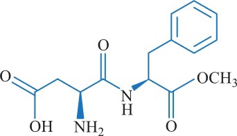 Công thức cấu tạo của aspartame được cho như hình vẽ dưới đây:
