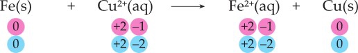 Fe + Cu2+ ⟶ Fe2+ + Cu