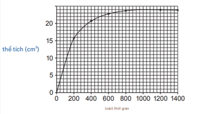 Thể tích CO2 (cm3) sinh ra sau mỗi 200 giây được biểu diễn dưới đồ thị sau: