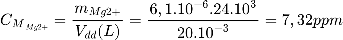 => Nồng độ Mg2+ (ppm) trong mẫu nước khoáng ban đầu là: