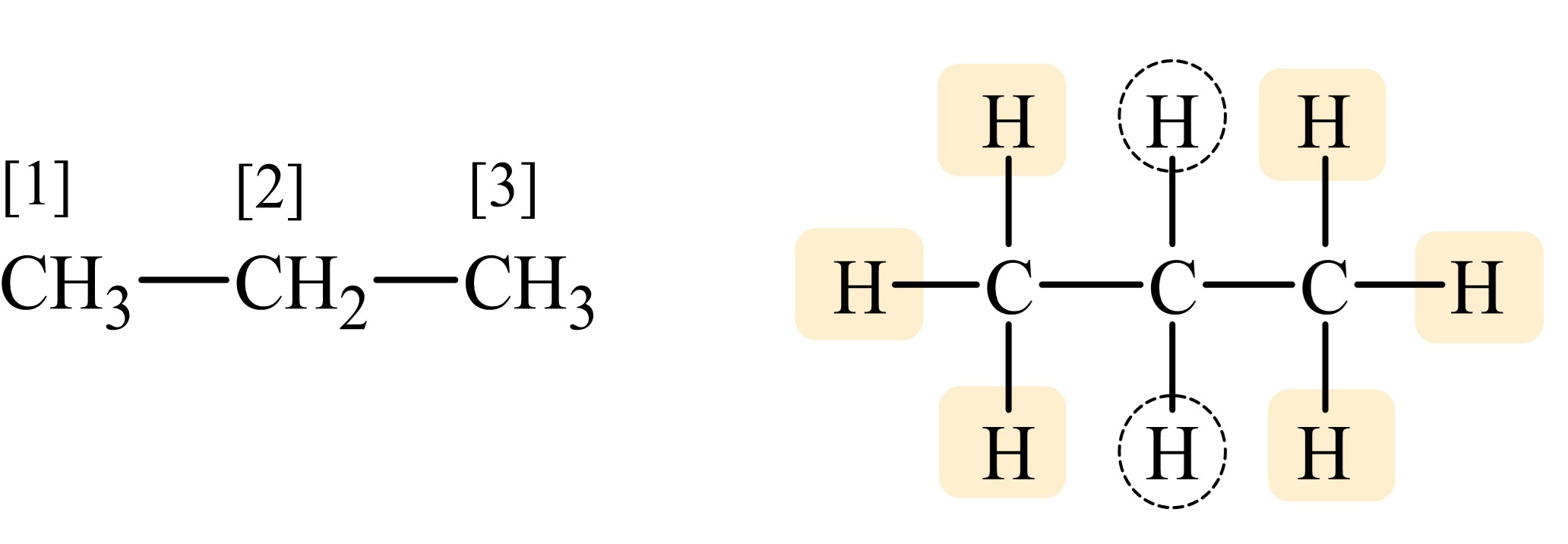 Mặt khác, trên propane C3H8 có hai loại nguyên tử H khác nhau: