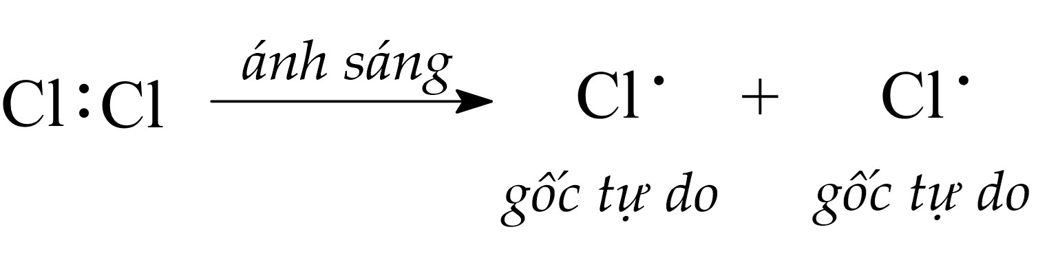 Phản ứng của propane với halogen (ví dụ như chlorine) dưới xúc tác của ánh sáng mặt trời sẽ hình thành các gốc tự do: