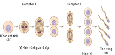 Hình thành giao tử là quá trình tạo ra từ tế bào mầm. Ở nam giới, quá trình hình thành giao tử đực (tinh trùng) được gọi là sự tạo tinh. Sự tạo tinh xảy ra trong tinh hoàn, Quá trình hình thành tinh trùng có thể phân chia thành 2 giai đoạn chính theo trình tự:- Giai đoạn phân bào sinh tinh: Giai đoạn này gồm nhiều lần phân bào từ tế bào mầm ban đầu cho đến khi tạo ra tiền tinh trùng (cũng gọi là tinh tử). Mỗi tinh nguyên bào tiến hành nguyên phân hình thành nên nhiều tinh bào bậc I. Mỗi tinh bào bậc I phân chia hai lần qua cơ chế giảm phân tạo thành bốn tiền tinh trùng. Các tiền tinh trùng sẽ chuyển sang giai đoạn tiếp theo sau đây mới tạo thành giao tử.