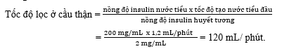 Câu 1 [1074320]: Dựa trên nồng độ insulin trong huyết tương và nước tiểu, tính tốc độ lọc ở cầu thận?