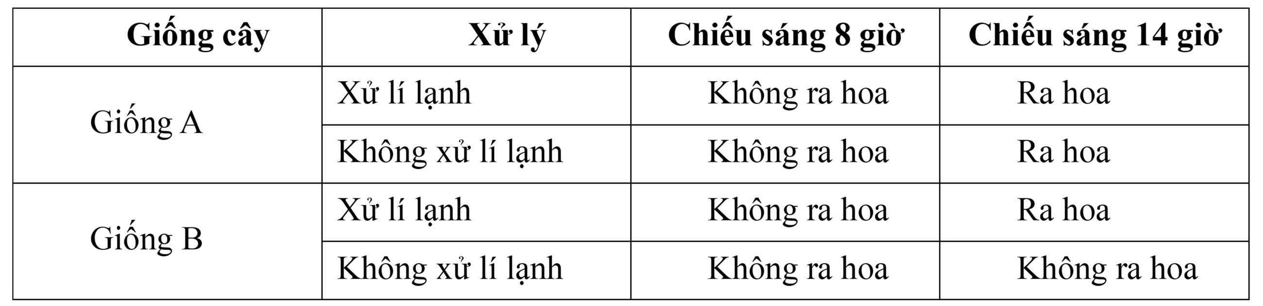 Câu 1 [1074344]: Giống cây A có đặc điểm gì về khả năng ra hoa trong các điều kiện quang chu kỳ và xử lý lạnh?
