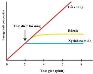 Câu 2 [1074381]: Khi sử dụng edenie, người ta thấy xuất hiện một độ trễ nhất định giữa khoảng thời gian bổ sung edenie đến khi ngừng tổng hợp protein. Điều này được giải thích bởi