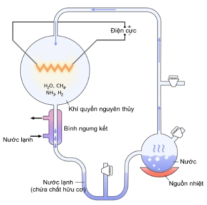 Hỗn hợp khí CH4, NH3, H2 và hơi nước được đặt trong điều kiện phóng điện liên tục suốt một tuần.