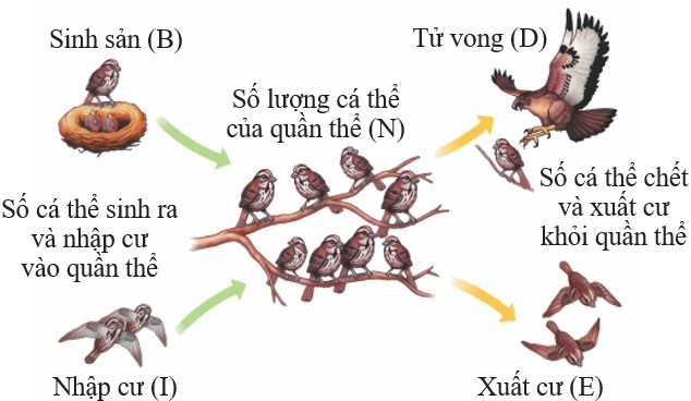 Số lượng cá thể của quần thể ảnh hưởng bởi 4 nhân tố:Mức sinh sản (Births): Số cá thể mới do quần thể sinh ra trong 1 khoảng thời gian nhất định.