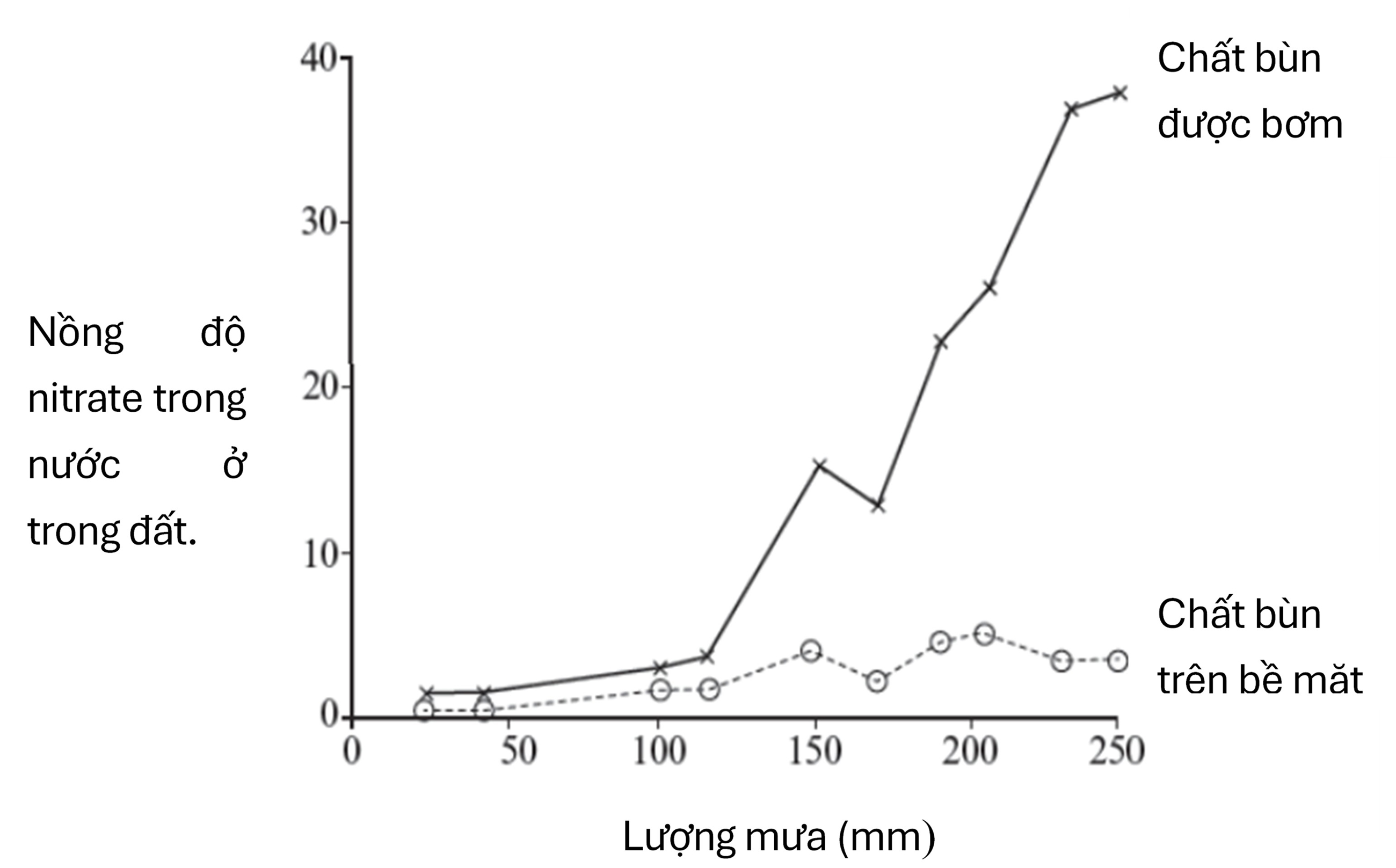 Câu 1 [1074440]: Mối quan hệ giữa sự rửa trôi nitrate và lượng mưa có thể được mô tả như thế nào?