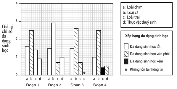 C. Đúng. Cá được coi là có đa dạng sinh học trung bình và các loài chim có đa dạng sinh học tốt.