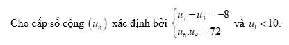 Câu 10 [1062434]: Cho cấp số cộng có số hạng tổng quát