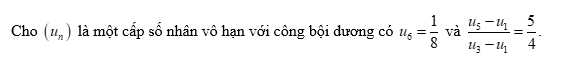 Cho cấp số nhân (un) thoả mãn u20 = 8u17 và u1 + u5 = 272.