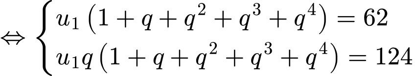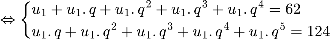 Cho cấp số nhân (un) có sáu số hạng, biết rằng tổng của năm số hạng đầu là 62 và tổng của năm số hạng sau là 124.
