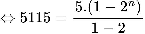 Câu 25 [274116]: Một cấp số nhân có số hạng đầu bằng 5 và công bội bằng 2. Hỏi phải lấy tổng của bao nhiêu số hạng đầu của dãy cấp số nhân này để có tổng bằng 5115?