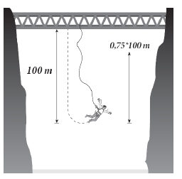 Câu 27 [271353]: Một người nhảy bungee (một trò chơi mạo hiểm mà người chơi nhảy từ một nơi có địa thể cao xuống với dây đai an toàn buộc xung quanh người) từ một cây cầu và căng một sợi dây dài 100m. Sau mỗi lần rơi xuống, nhờ sự đàn hồi của dây, người nhảy được kéo lên một quãng đường có độ dài bằng 75% so với lần rơi trước đó và lại bị rơi xuống đúng bằng quãng đường vừa được kéo lên (Hình vẽ). Tính tổng quãng đường người đó đi được sau 10 lần kéo lên và lại bị rơi xuống.