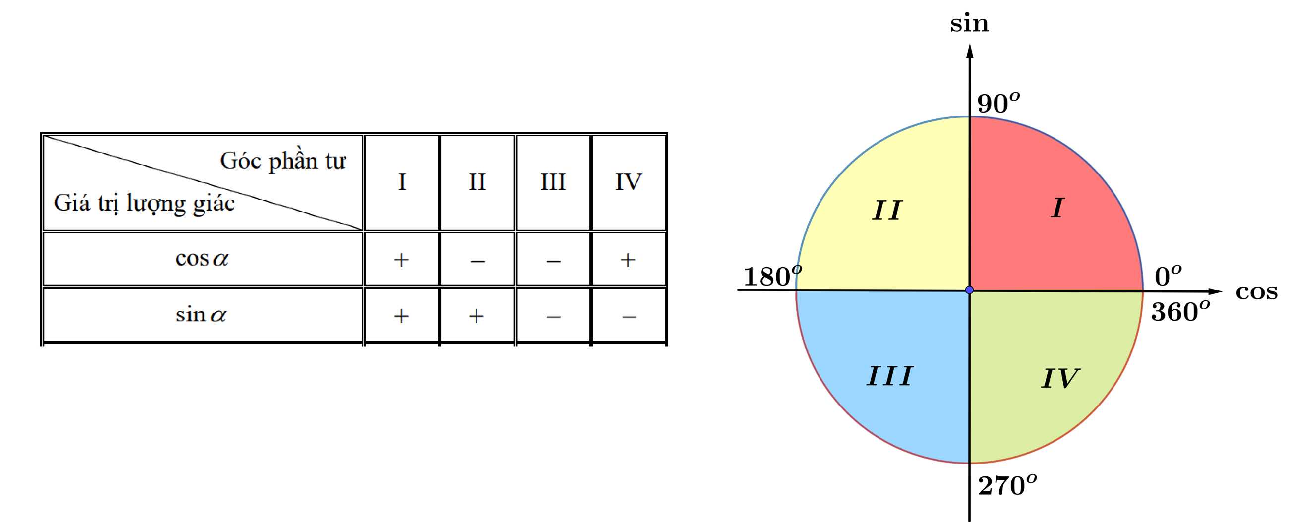 thuộc vào góc phần tư thứ nhất.Từ bảng trên, ta suy ra