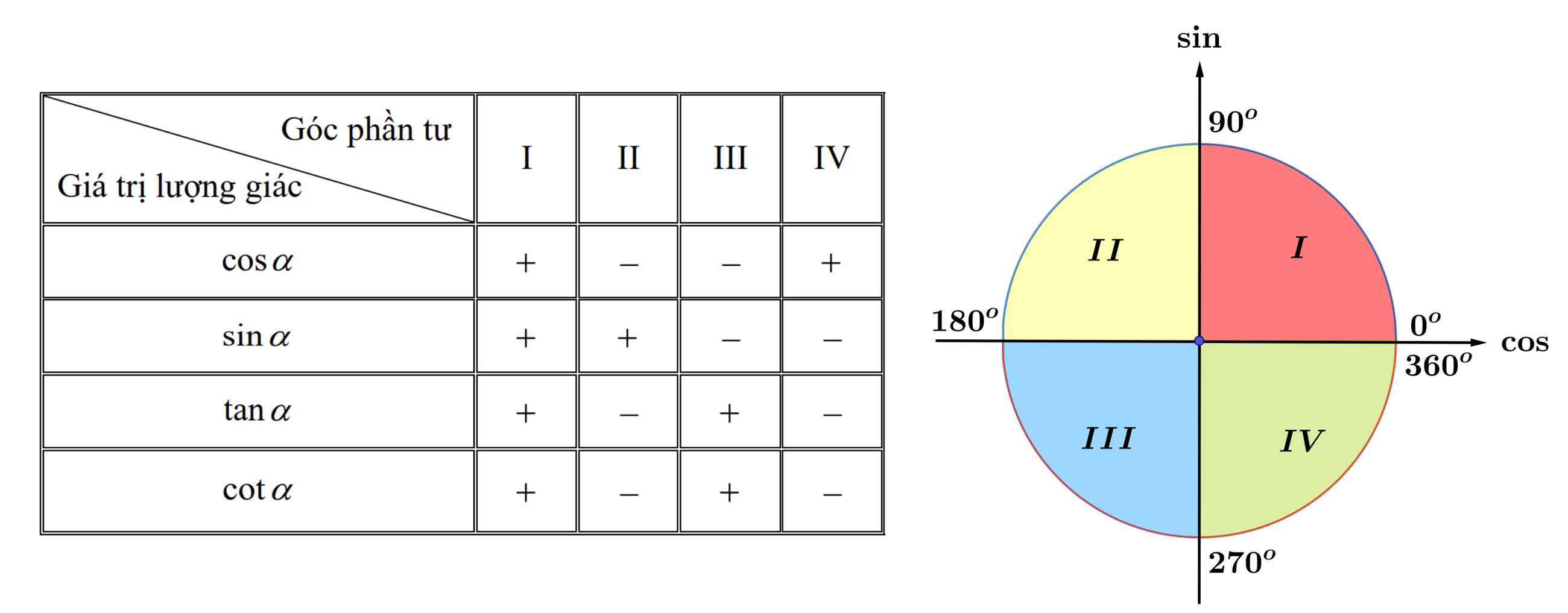 Bảng dấu giá trị lượng giác: