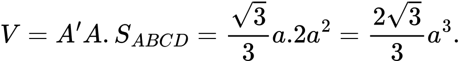 Thể tích khối hộp chữ nhật đã cho bằng A,