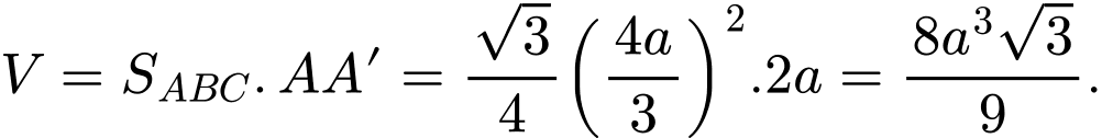 . Khi đó thể tích khối lăng trụ bằng: A,