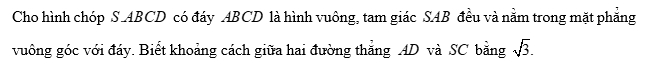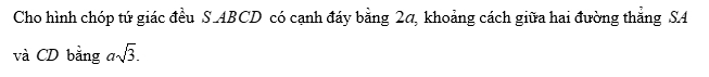 là tâm của đáy. Khoảng cách giữa hai đường thẳng