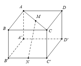 Cho hình lập phương ABCD.A'B'C'D' cạnh a. Gọi M, N lần lượt là trung điểm của AC và B'C' (tham khảo hình vẽ bên).