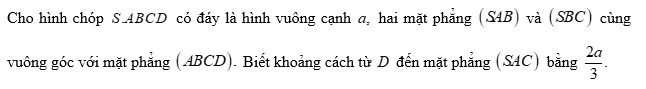 Cho hình chóp S.ABCD có đáy là hình chữ nhật AB = a, AD = 2a, SA vuông góc với mặt phẳng đáy và SA = a. Gọi M là trung điểm của AD.