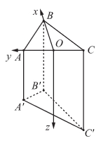 Từ mặt nước trong một bể nước, tại ba vị trí đôi một cách nhau 4 m, người ta lần lượt thả dây dọi để quả dọi chạm một đáy bể phẳng. Phần dây dọi (thẳng) nằm trong nước tại ba vị trí đó lần lượt có độ dài 8 m; 8,8 m; 9,6 m. Gọi ba điểm ở trên mặt nước lần lượt là A, B, C và ba điểm tương ứng ở đáy bể là A', B', C' sao cho AA' = 8 m; BB' = 8,8 m và CC' = 9,6 m. Chọn hệ trục tọa độ Oxyz như hình vẽ (đơn vị mỗi trục là mét), với gốc toạ độ O là trung điểm của AC, điểm B thuộc tia Ox, điểm A thuộc tia Oy và trung điểm của A'C' thuộc tia Oz.