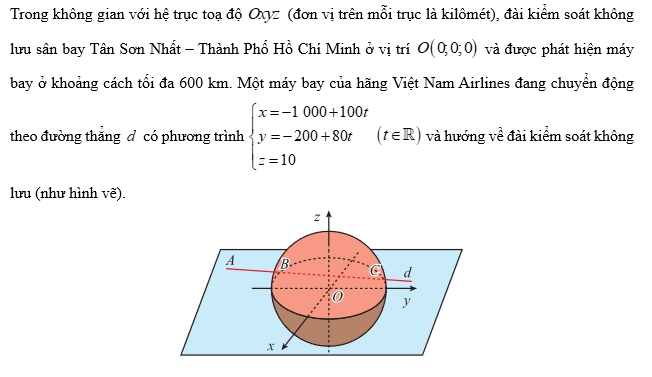 Câu 15 [740049]: Khoảng cách ngắn nhất giữa máy bay với đài kiểm soát không lưu bằng bao nhiêu km? (làm tròn kết quả đến hàng đơn vị).