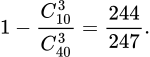 Câu 17 [792238]: Thầy giáo có 10 câu hỏi trắc nghiệm, trong đó có 6 câu đại số và 4 câu hình học. Thầy gọi bạn Nam lên trả bài bằng cách chọn lấy ngẫu nhiên 3 câu hỏi trong 10 câu hỏi trên đê trả lời. Hỏi xác suất bạn Nam chọn ít nhất có một câu hình học là bằng bao nhiêu?