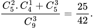 Xác suất để 3 đoàn viên được chọn có 2 nam và 1 nữ là: