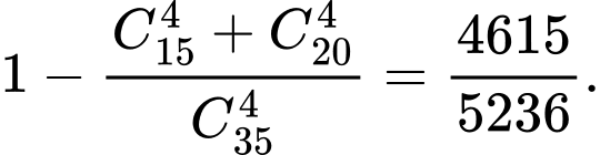 Câu 20 [792244]: (THPT Chuyên Thái Bình - Thái Bình, lần 1 - 2018) Một lớp có 20 nam sinh và 15 nữ sinh. Giáo viên chọn ngẫu nhiên 4 học sinh lên bảng giải bài tập. Tính xác suất để 4 học sinh được gọi có cả nam và nữ.
