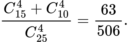 Câu 10 [792248]: Trong một lớp học gồm có 15 học sinh nam và 10 học sinh nữ. Giáo viên gọi ngẫu nhiên 4 học sinh lên bảng giải bài tập. Tính xác suất để 4 học sinh được gọi có cả nam và nữ.